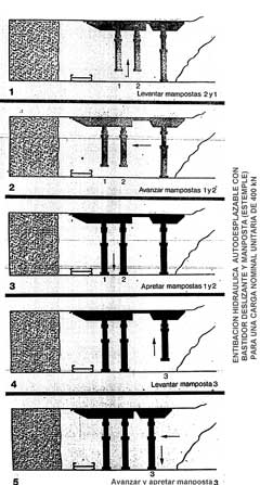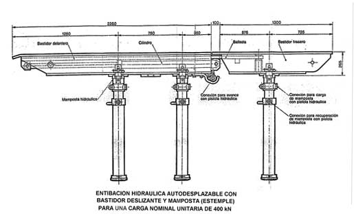 Self-powered support system with slider frame and prop (logs) for a unit nominal load of 400 kN.